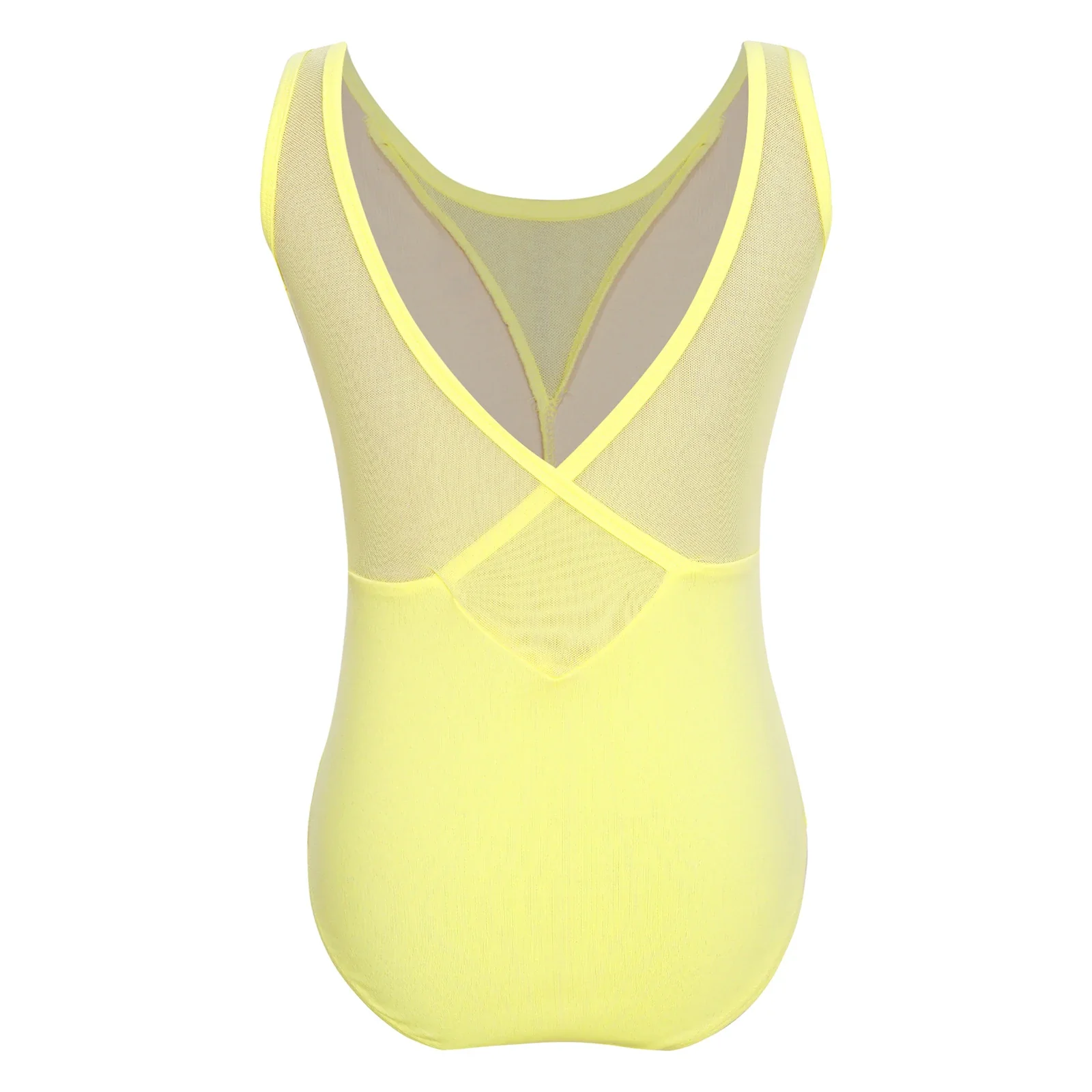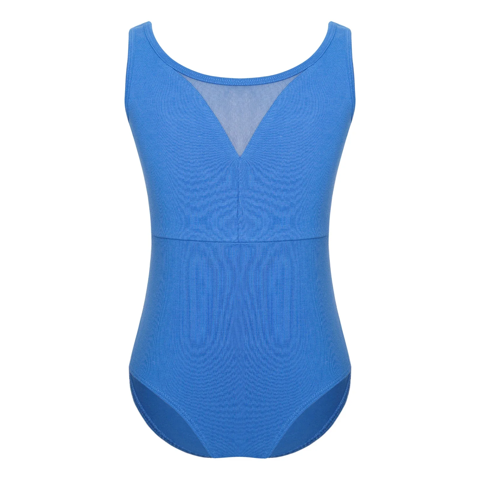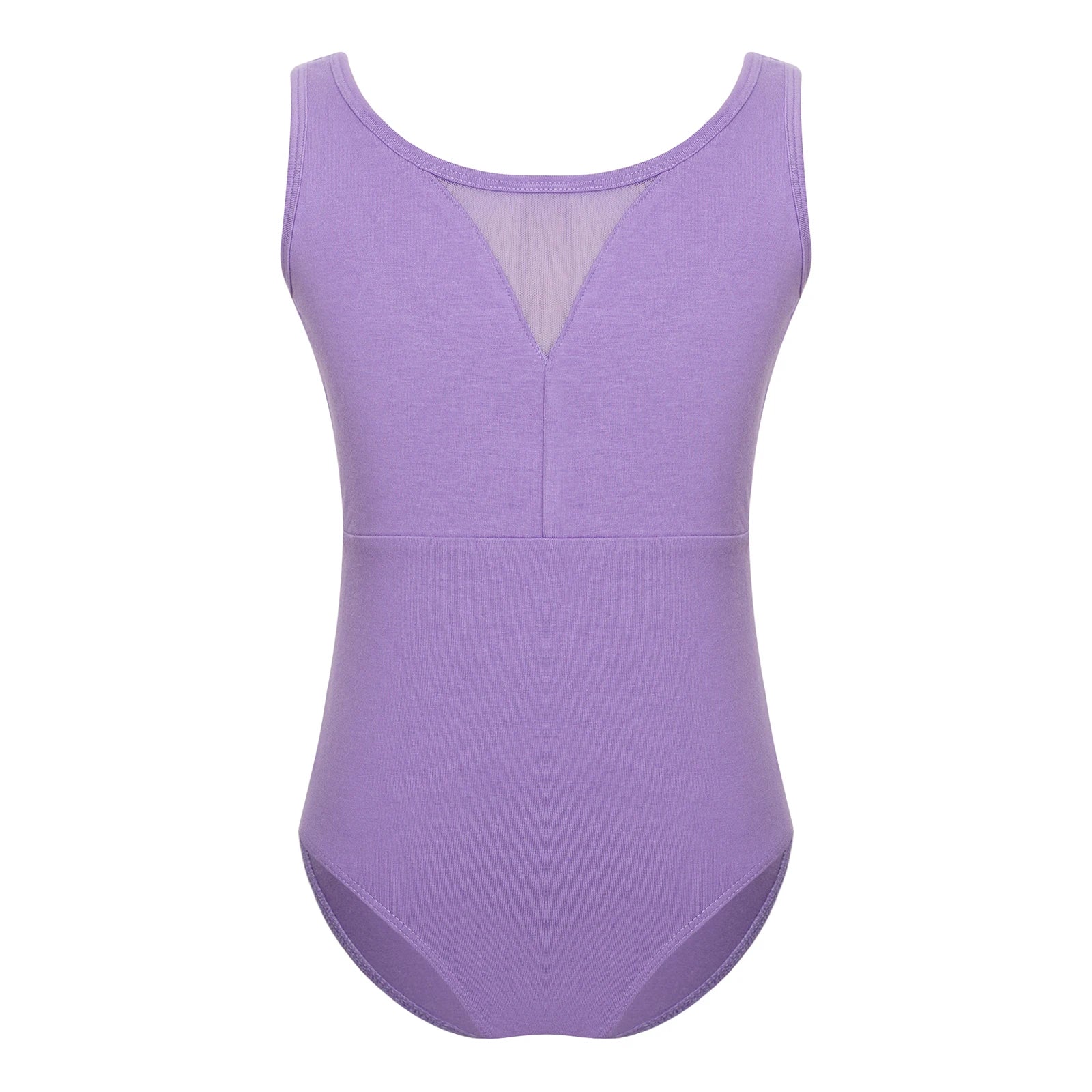Cute children’s tank bodysuit leotard with mesh contrast. Snaps on crotch. Cotton. Spandex. Imported.