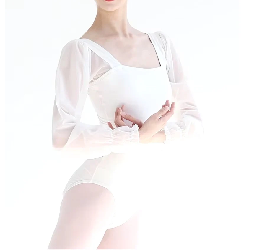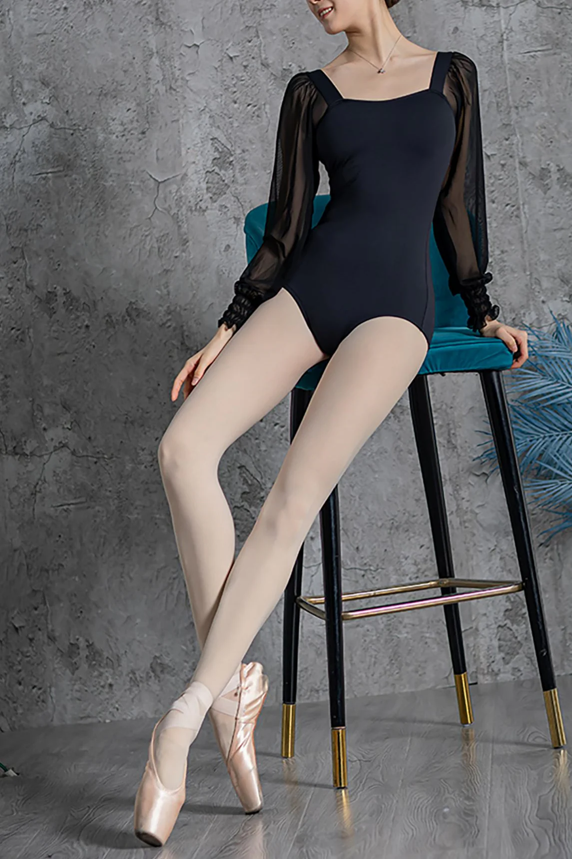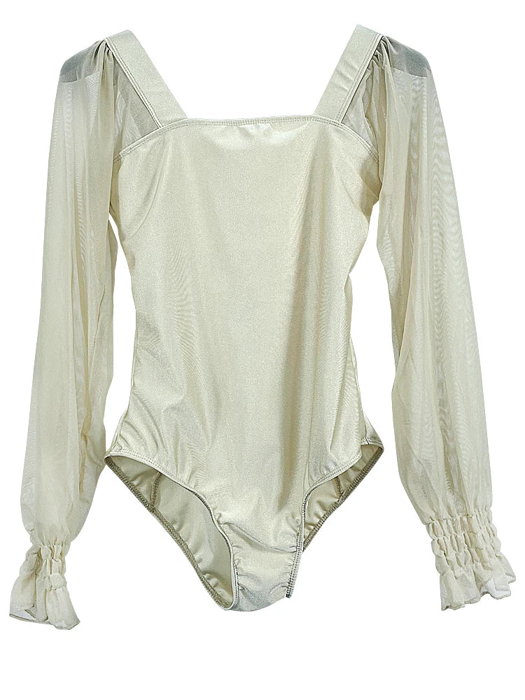 Sheer puff sleeves give instant flair to this stylish leotard. Stretch and Spandex. Polyester. Imported.