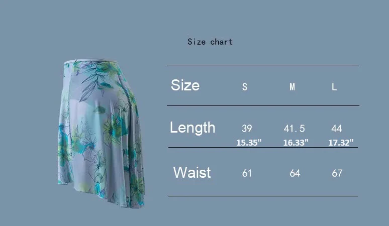 size chart for floral ballet skirt