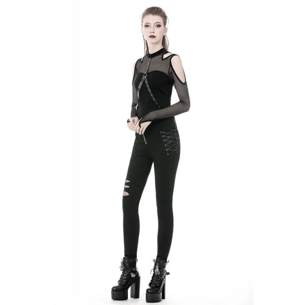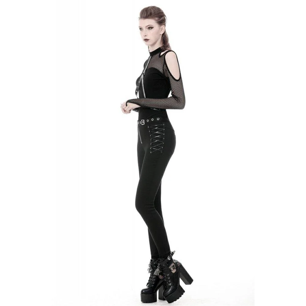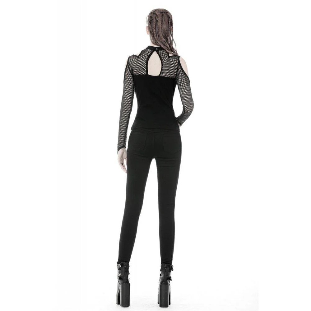 Top a maniche mech sexy punk con spalle scoperte da donna