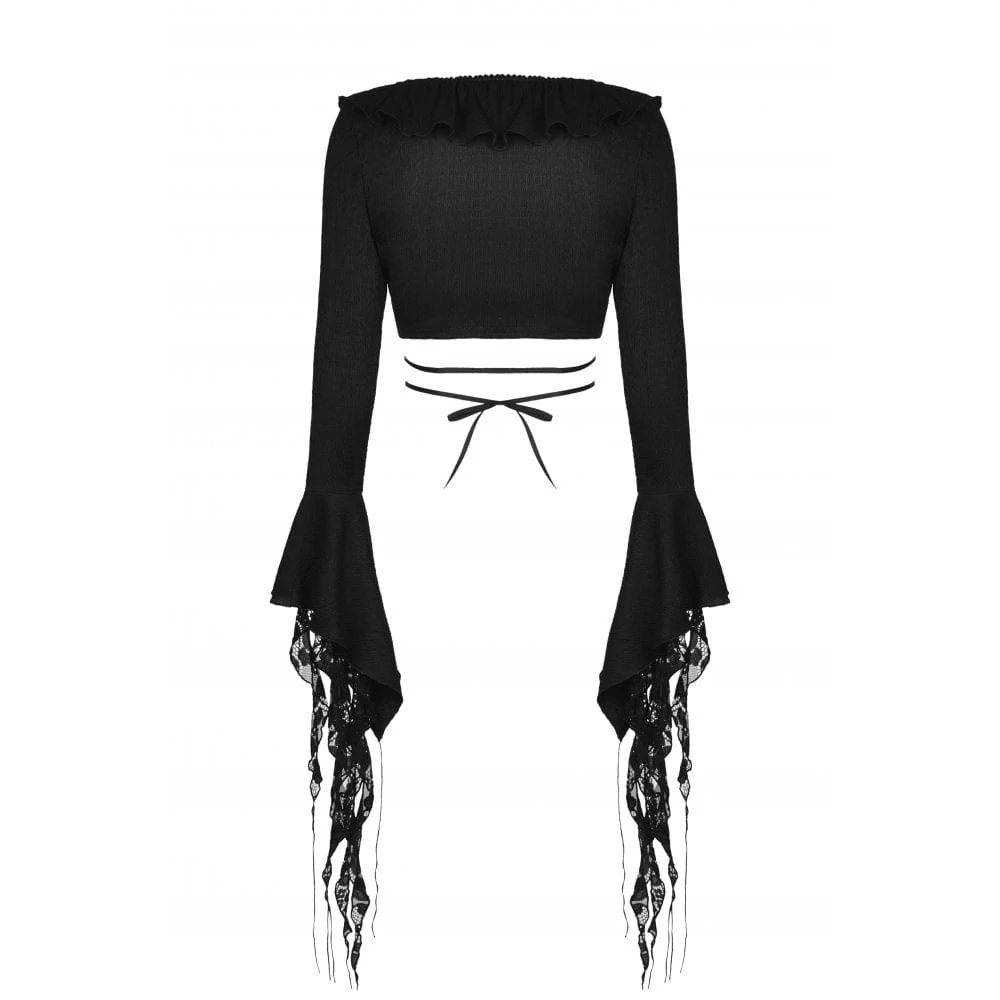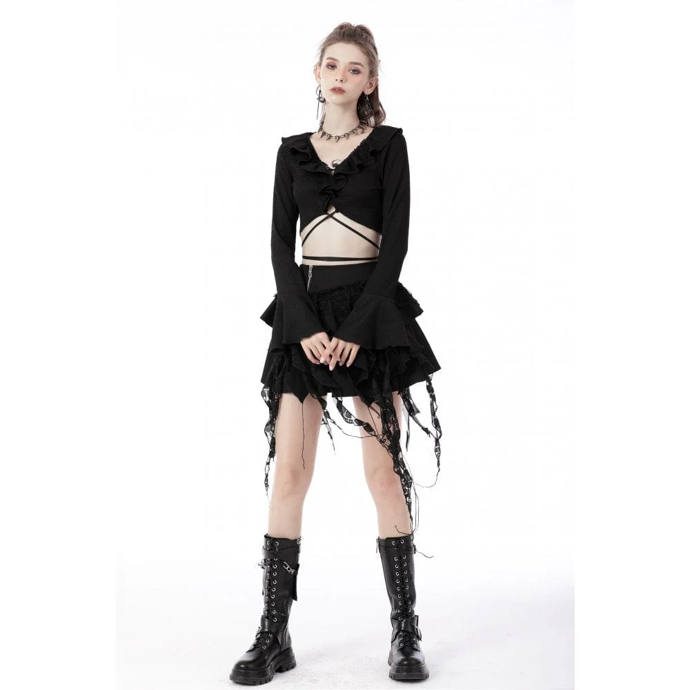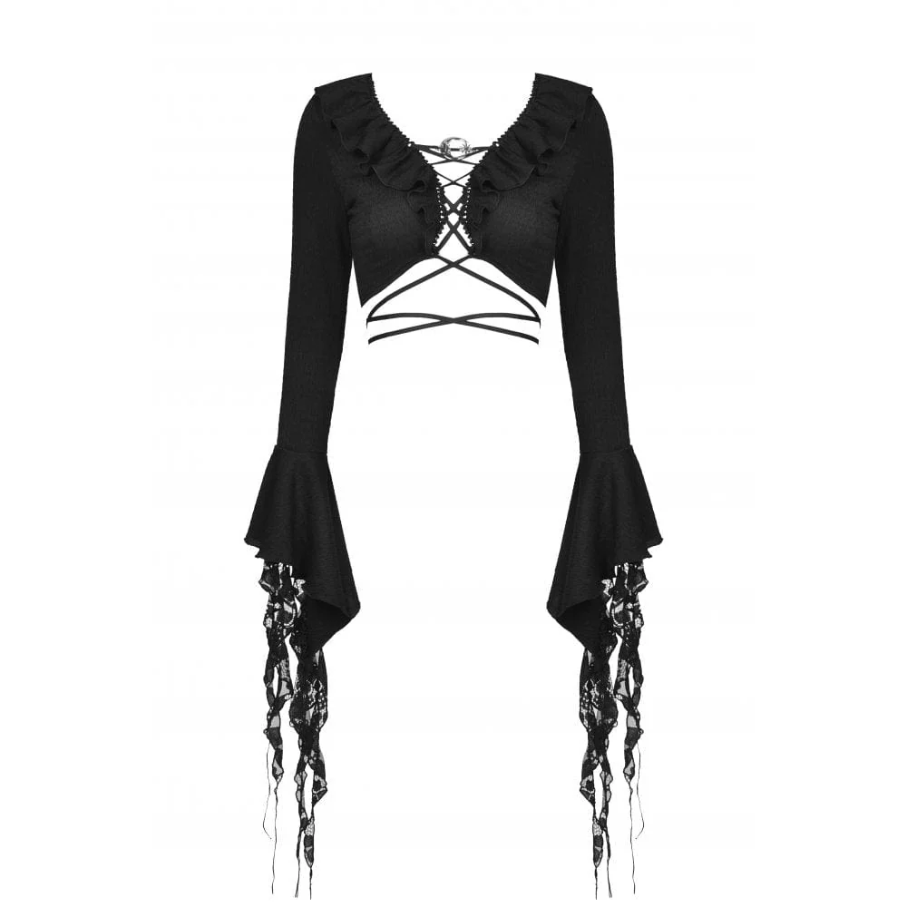 Top corto da donna con lacci e maniche a sbuffo in stile gotico
