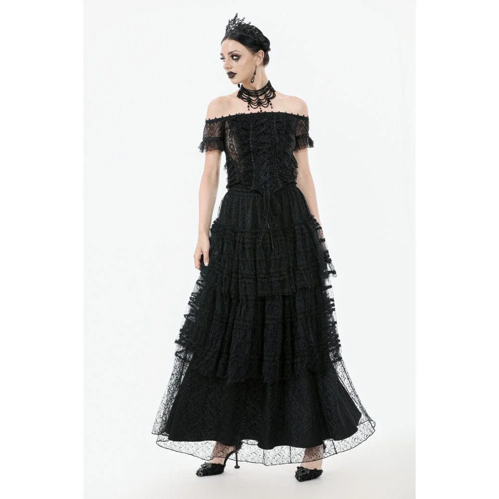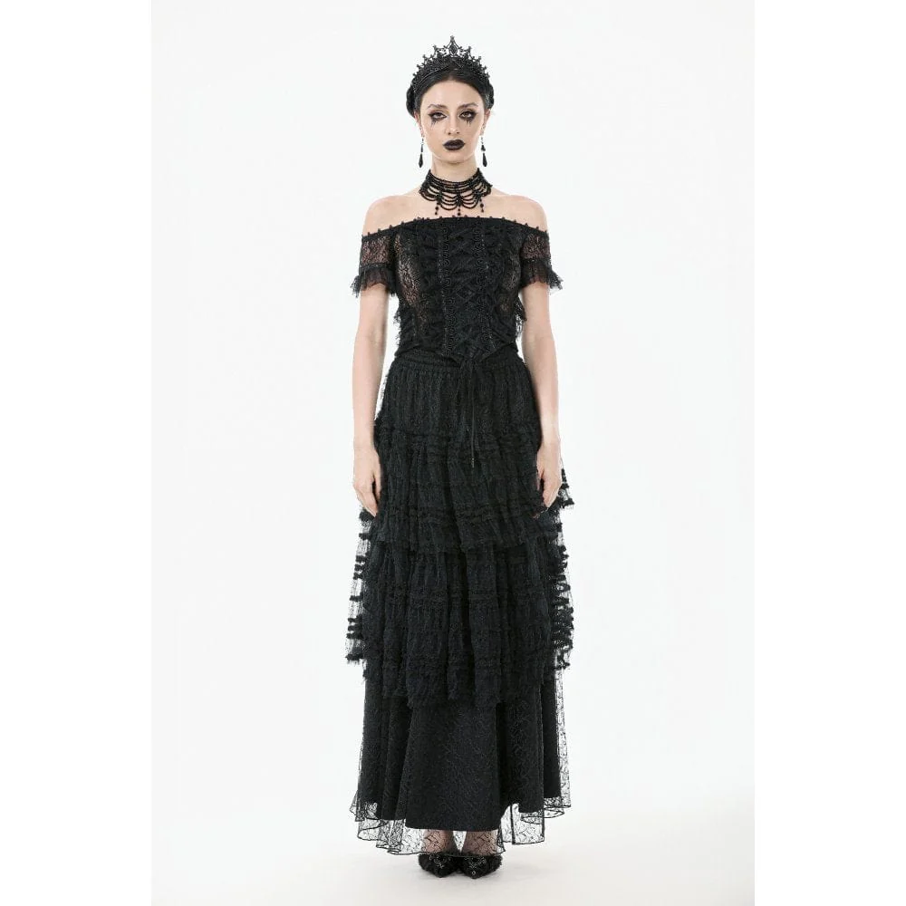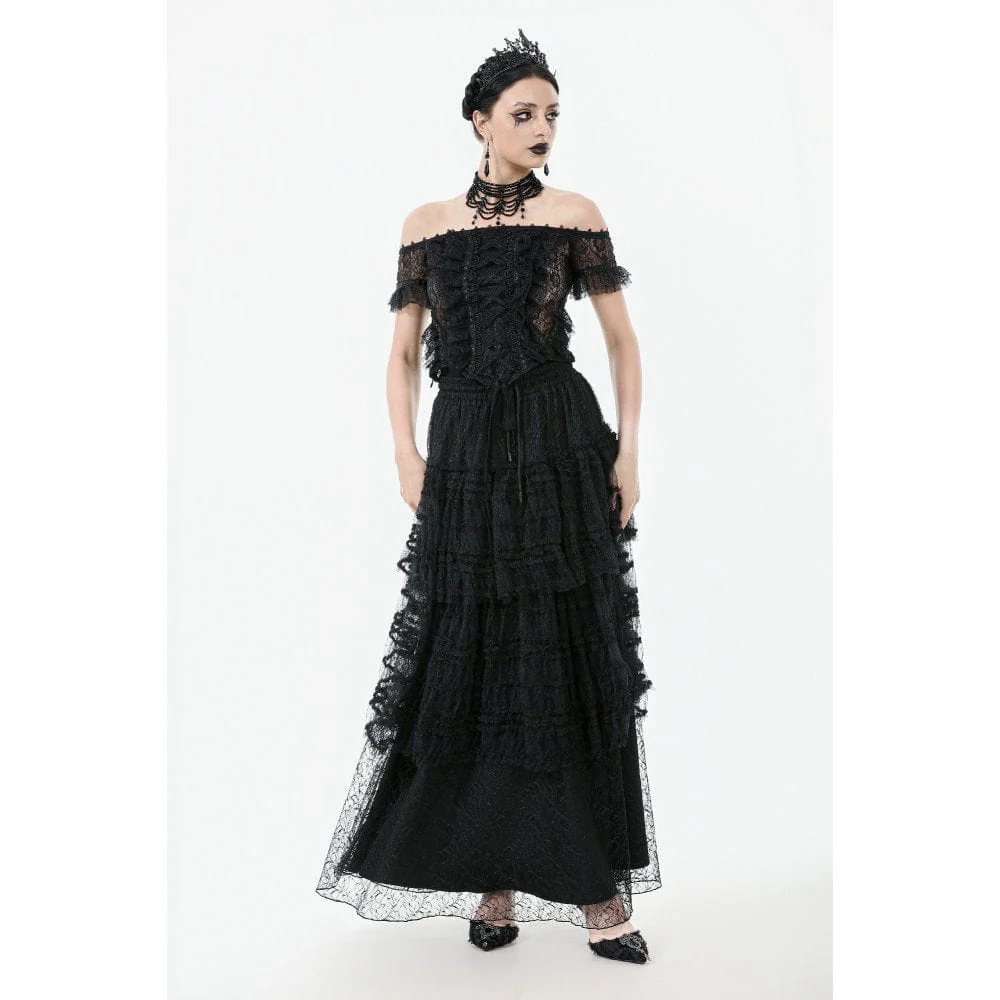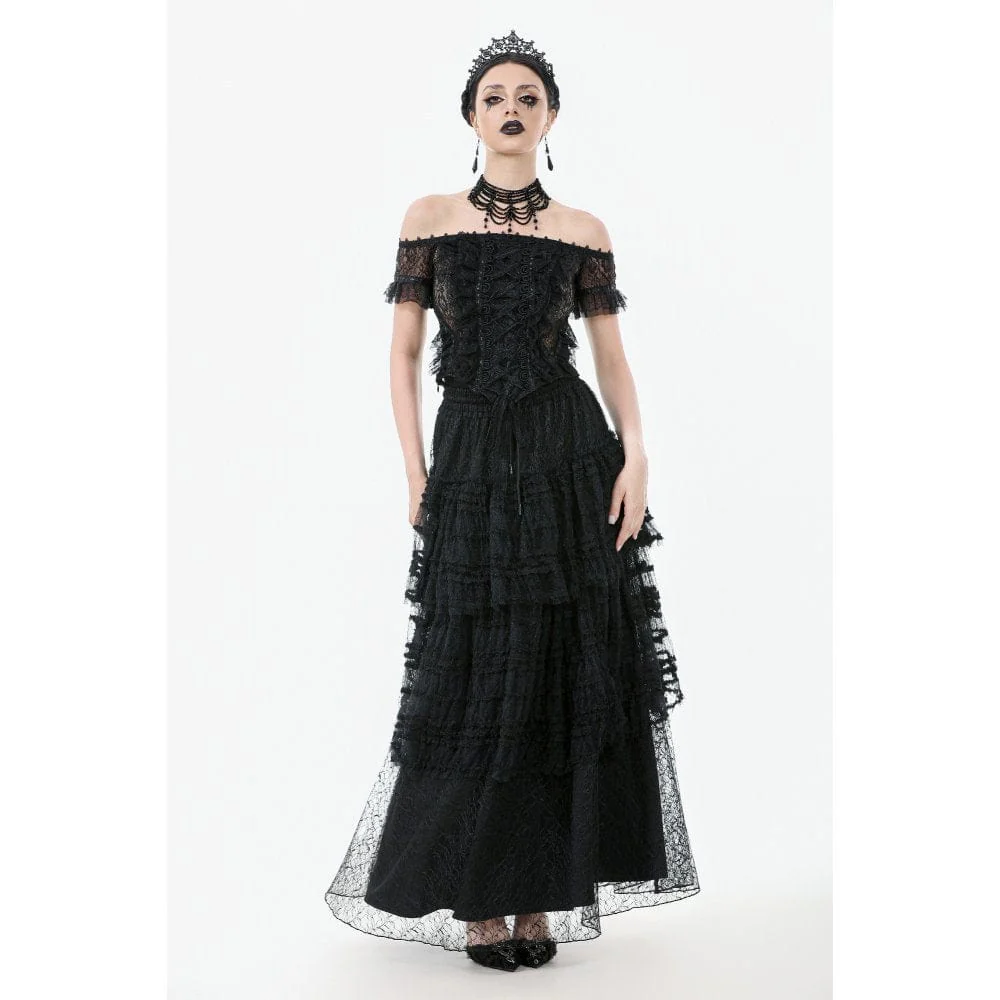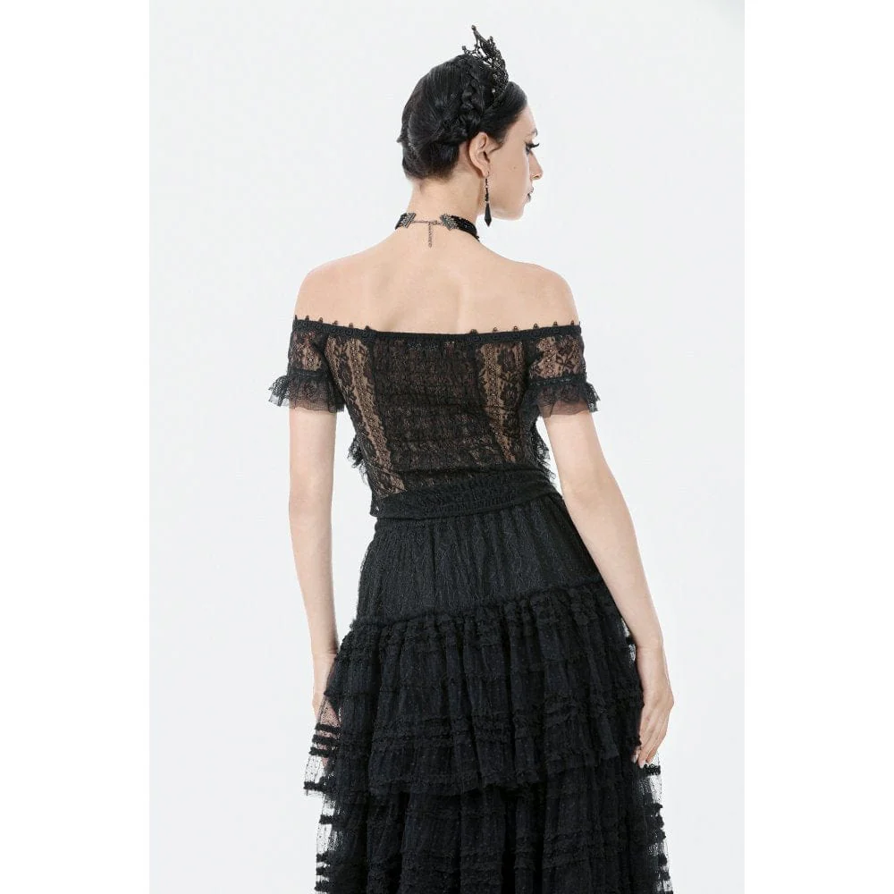 Top in pizzo con volant e spalle scoperte in stile gotico da donna