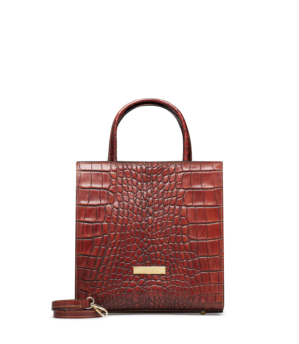Tote in pelle stampa cocco marrone