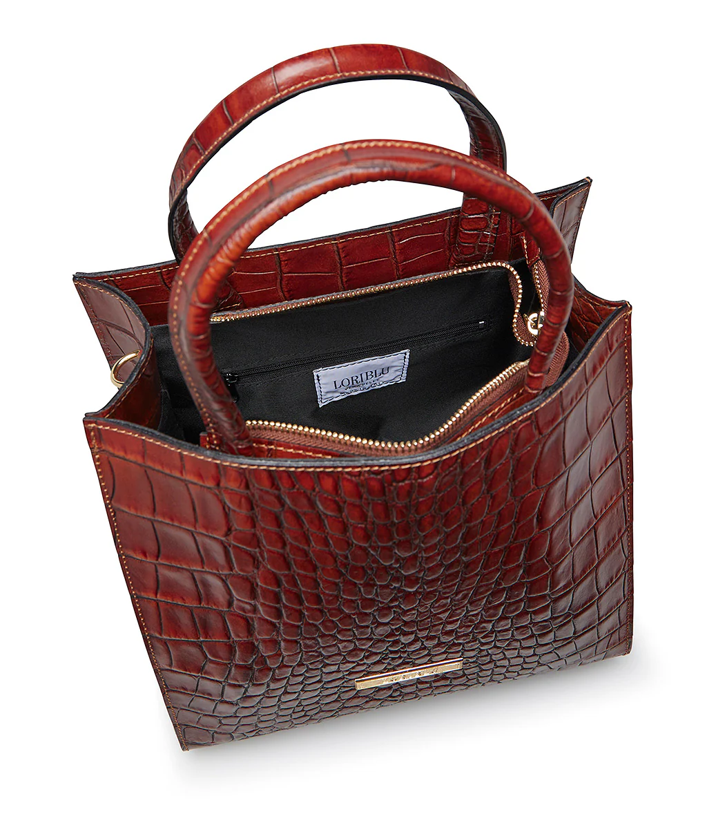 Un accessorio di classe senza tempo. Questa Tote è realizzata in pelle con elegante lavorazione stampa cocco. Il colore marrone caldo esalta la texture grintosa e raffinata, mentre il logo metallico dorato sul fronte aggiunge un tocco luminoso e distintivo. dotata di doppi manici rigidi, è ideale per un look sofisticato, da giorno, perfetta per contenere tutto l’essenziale con stile.