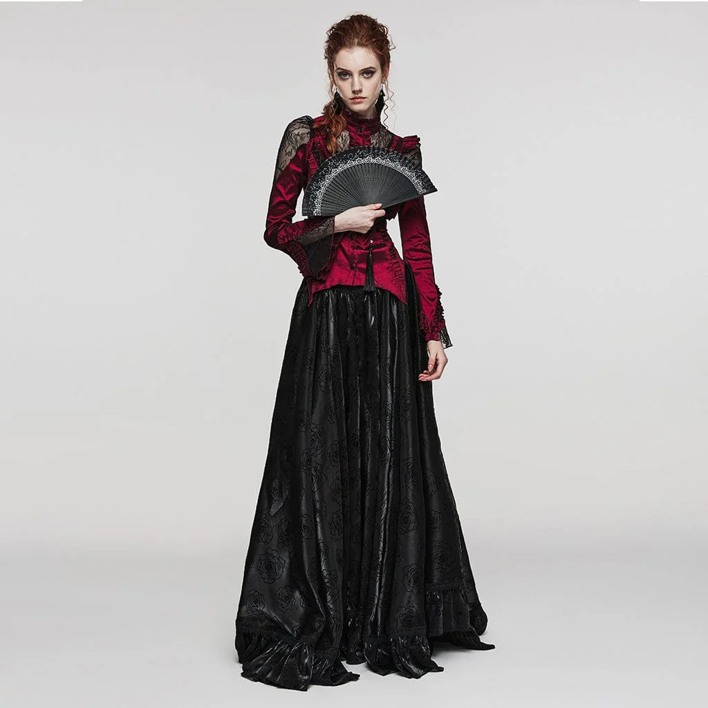 Questo ventaglio pieghevole gotico ha una nappa con teschio sul fondo. Design dettagliato con viti a corona stampate e intaglio a forma di fiore.