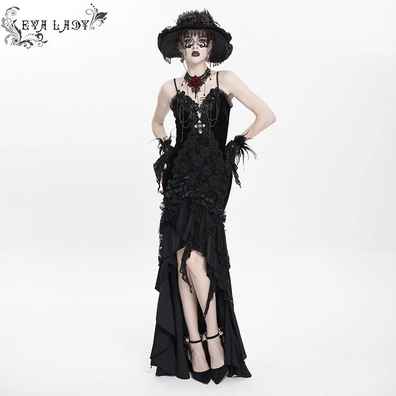 VenditaScegli Questo prodotto ha più varianti. Le opzioni possono essere scelte nella pagina del prodottoAbito da sposa lungo in velluto con ricami floreali gotici da donna, nero