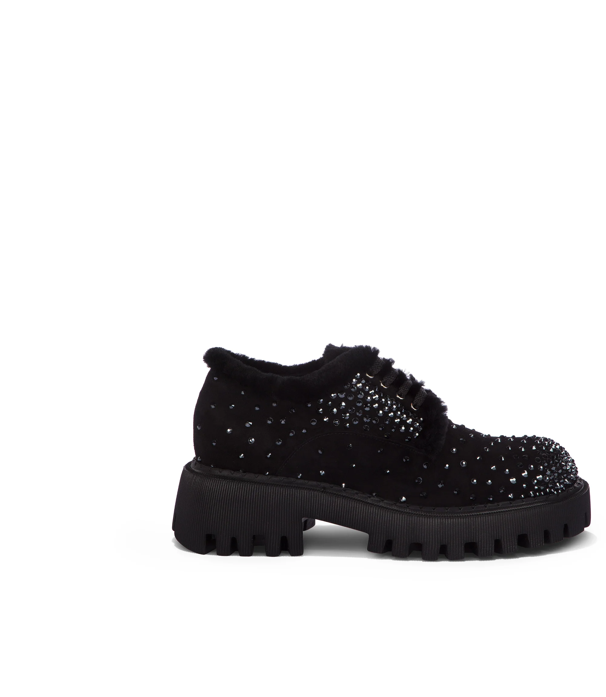 Derby in camoscio nero con cristalli