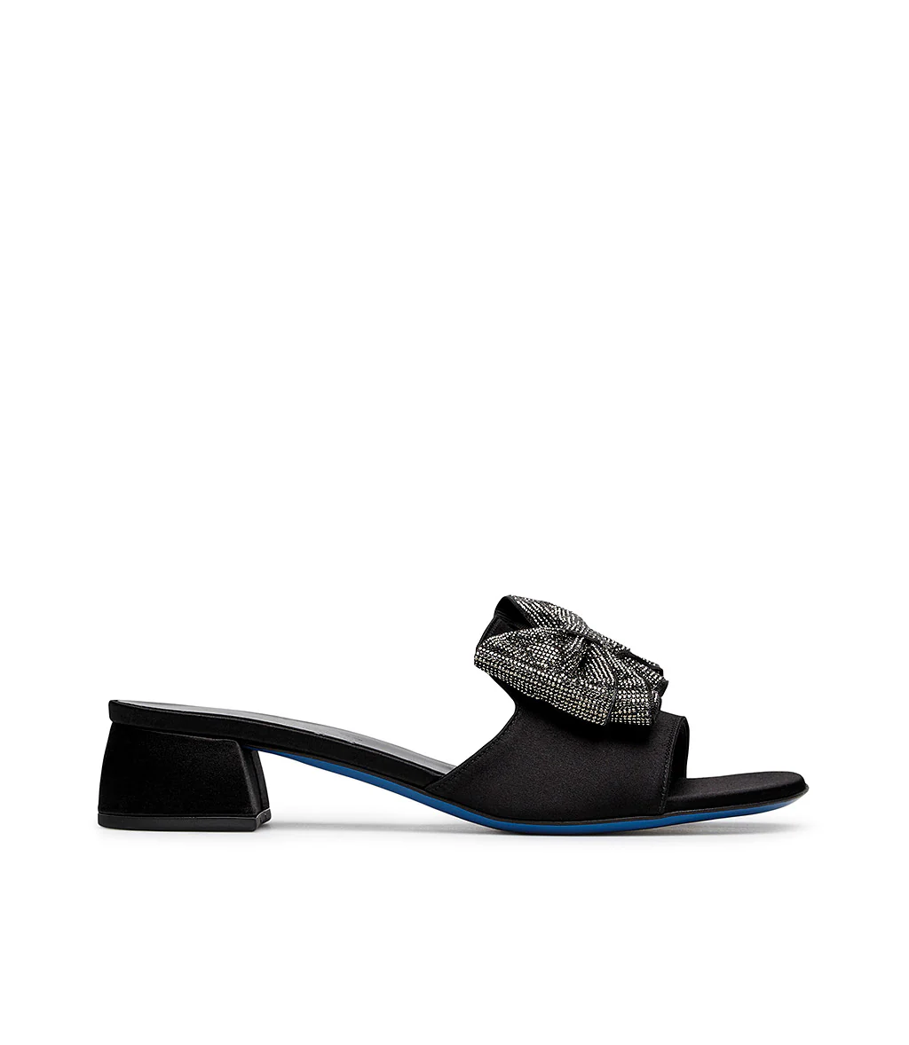 Mule in raso nero con fiocco