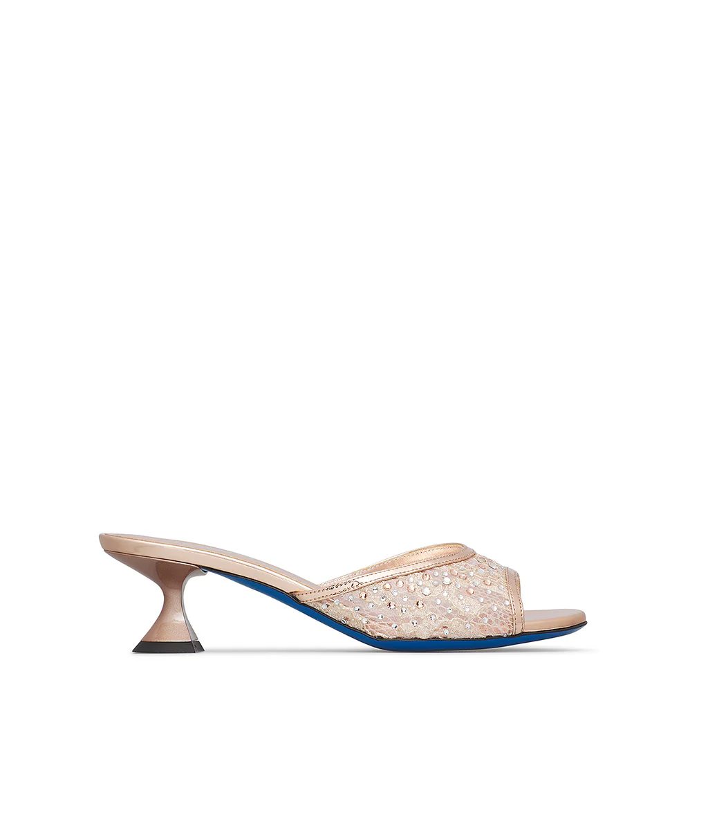 Mules in raso bronze con cristalli