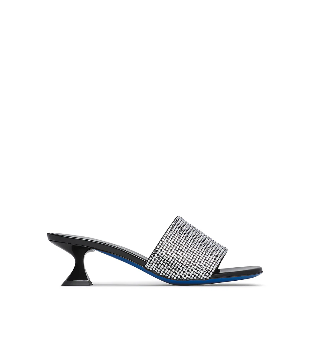 Mules in raso nero con cristalli