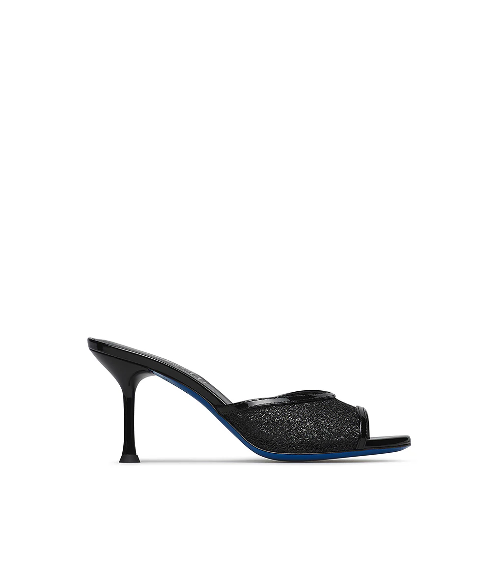 Mule in vernice nera con cristalli