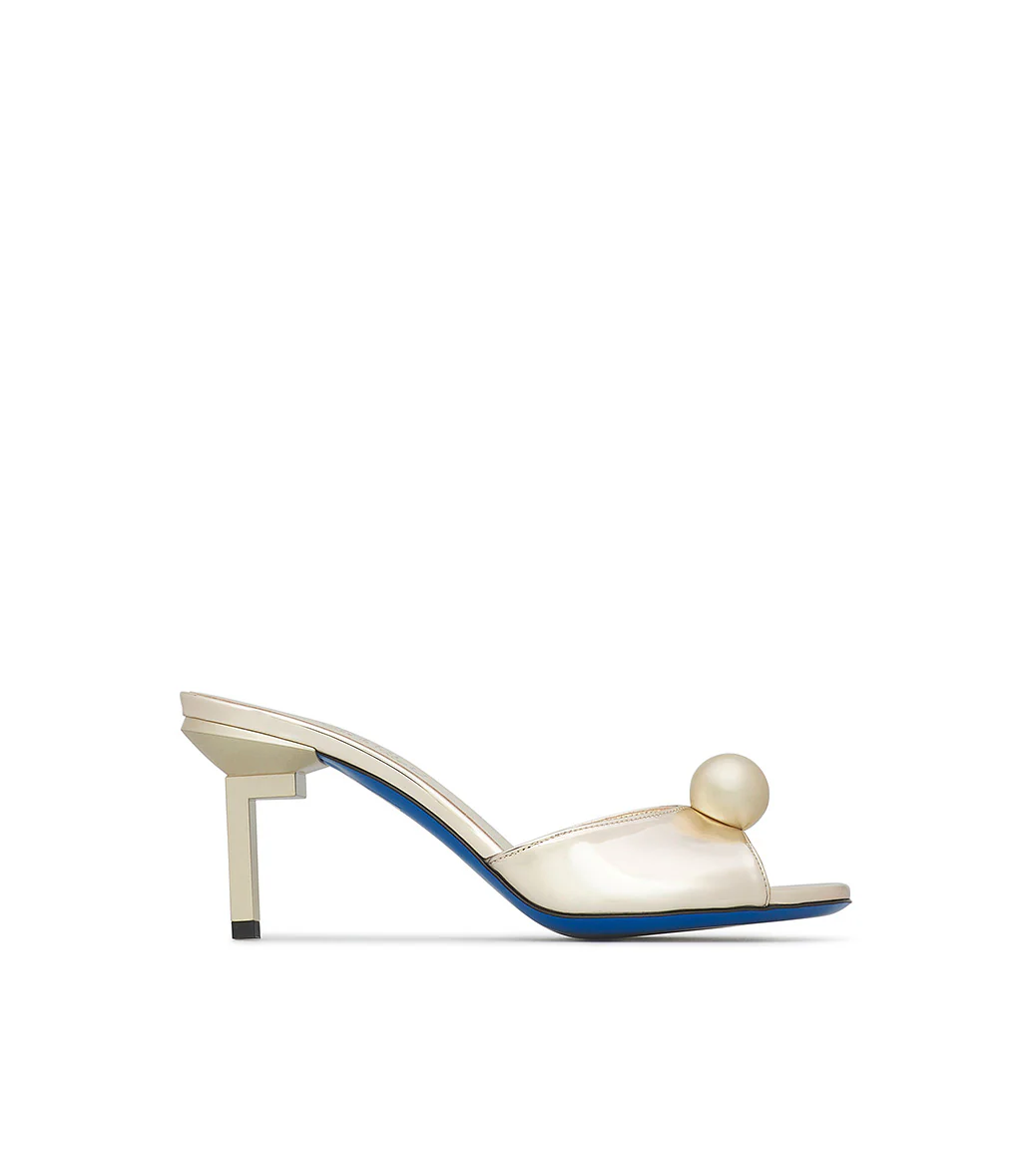 Mule in vernice color platino