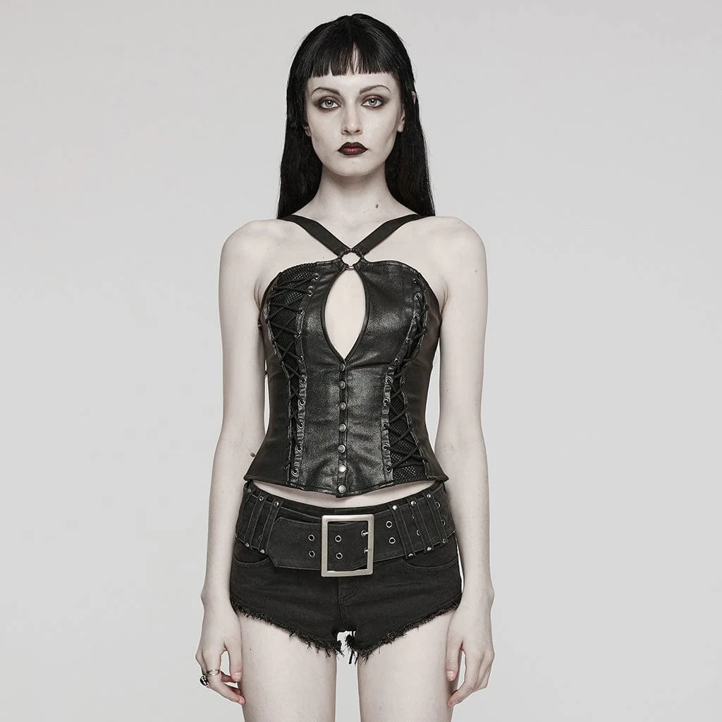 VenditaScegli Questo prodotto ha più varianti. Le opzioni possono essere scelte nella pagina del prodottoCanotta da donna con fibbia con lacci e ritaglio punk