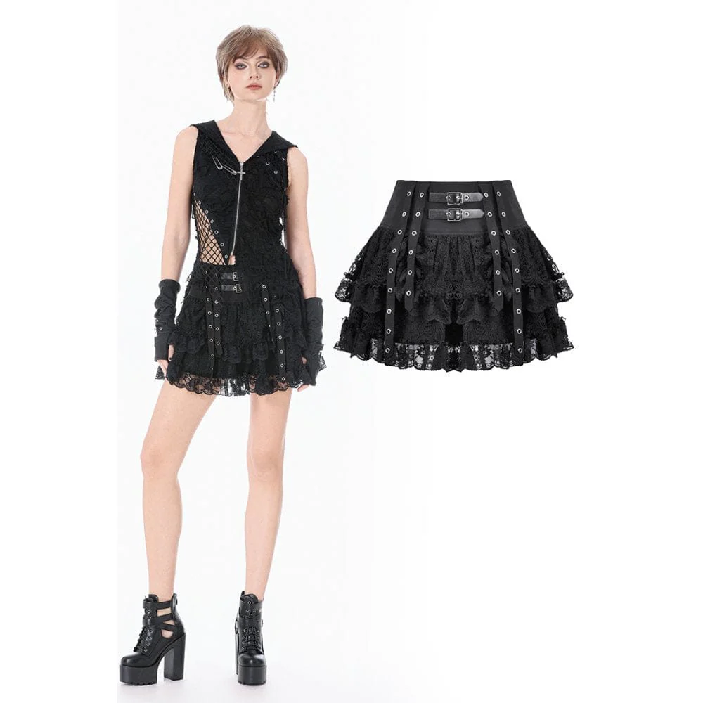VenditaScegli Questo prodotto ha più varianti. Le opzioni possono essere scelte nella pagina del prodottoMinigonna in pizzo multistrato con cinturino a occhielli punk da donna