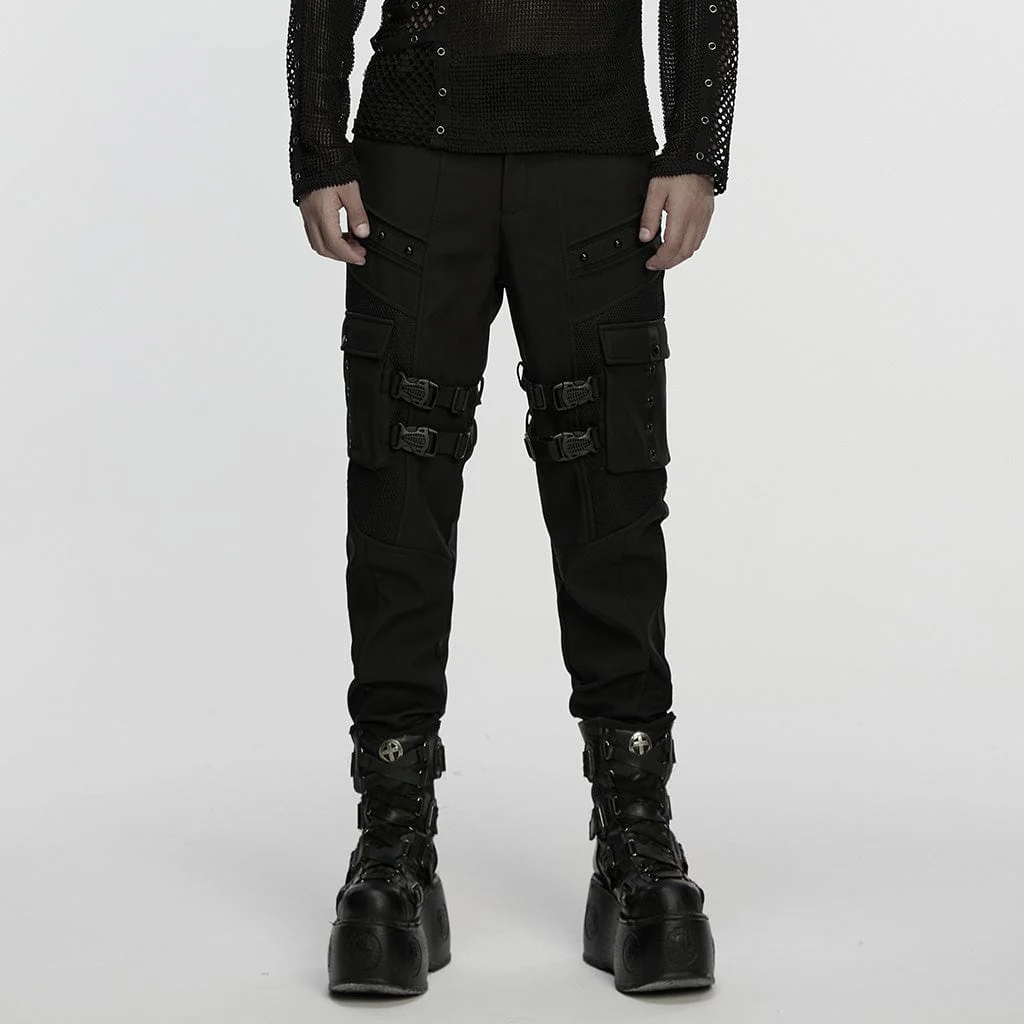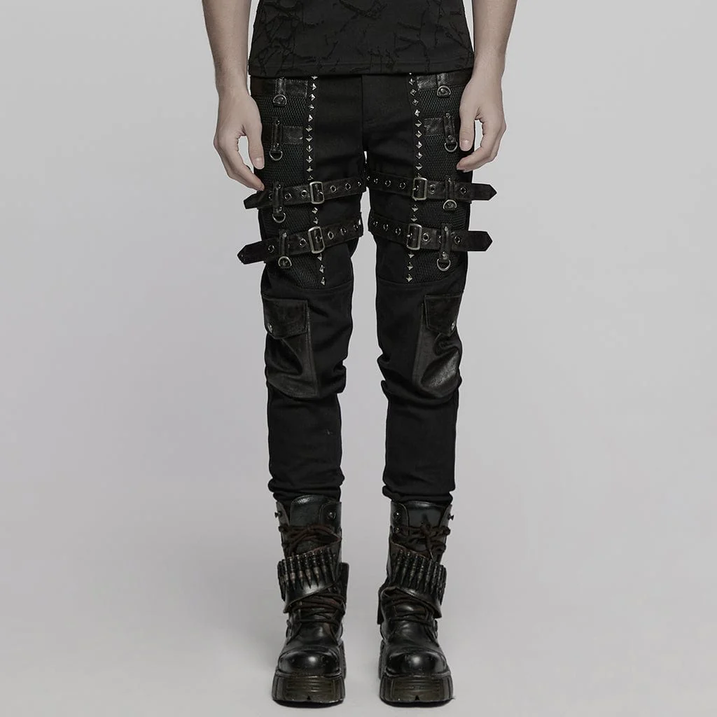 VenditaScegli Questo prodotto ha più varianti. Le opzioni possono essere scelte nella pagina del prodottoPantaloni da uomo con cinturini con fibbia punk e borchie in rete