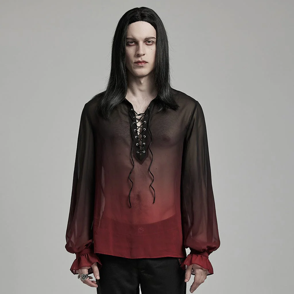 VenditaScegli Questo prodotto ha più varianti. Le opzioni possono essere scelte nella pagina del prodottoCamicia da uomo in chiffon trasparente con lacci sfumati di colore gotico