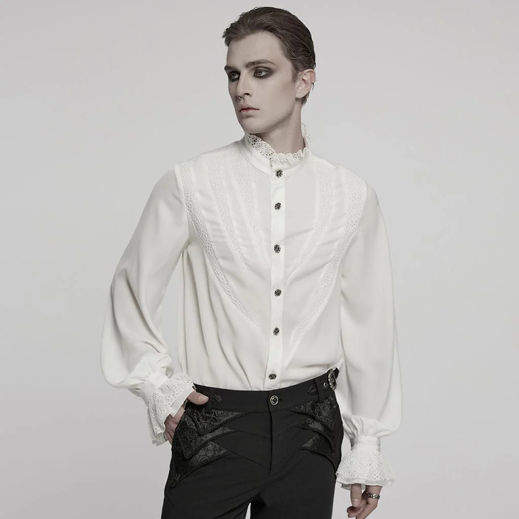 VenditaScegli Questo prodotto ha più varianti. Le opzioni possono essere scelte nella pagina del prodottoCamicia da uomo in chiffon con maniche a sbuffo e pizzo bianco gotico