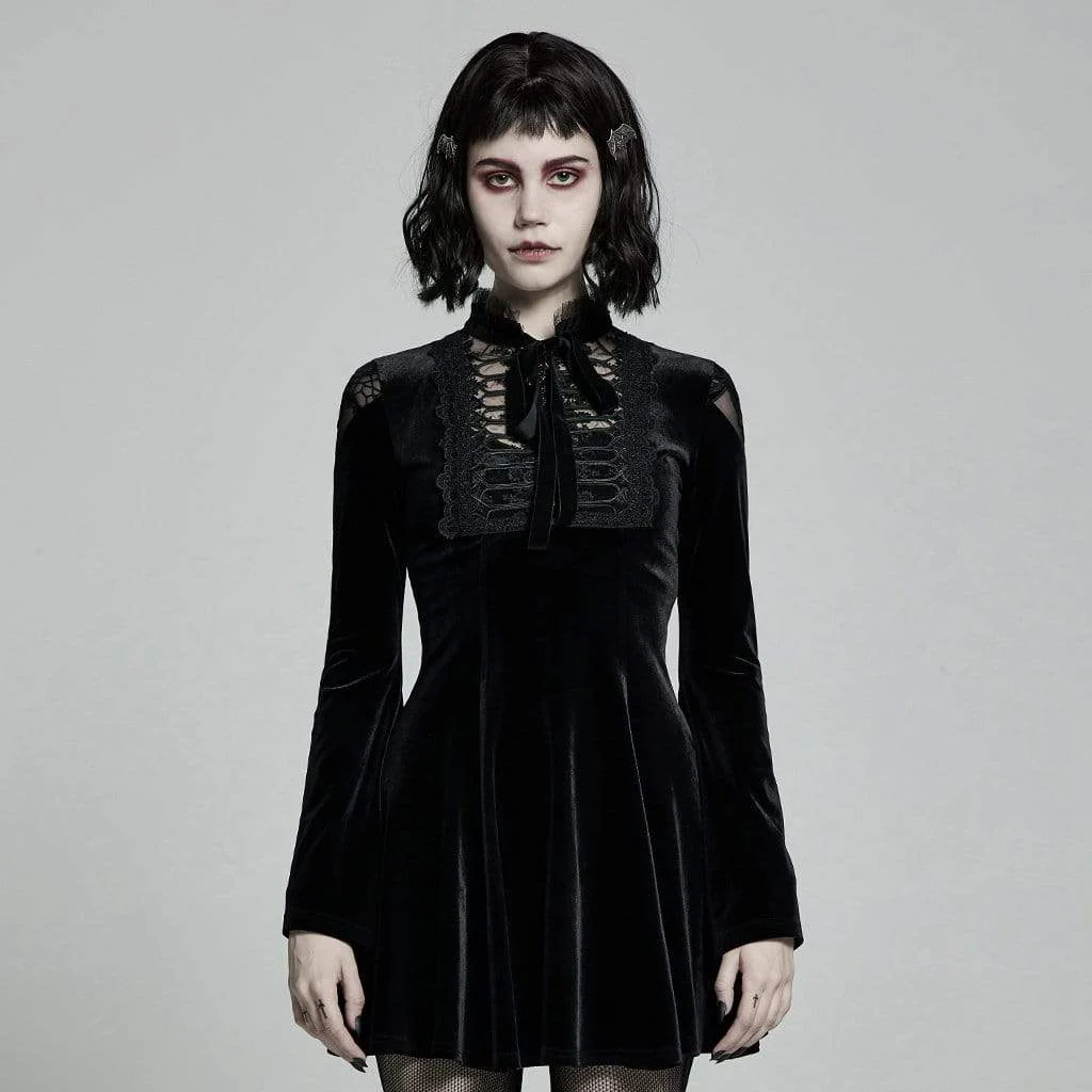 VenditaScegli Questo prodotto ha più varianti. Le opzioni possono essere scelte nella pagina del prodottoAbito da laurea da donna in velluto nero con maniche a svasate in stile gotico vittoriano e papillon