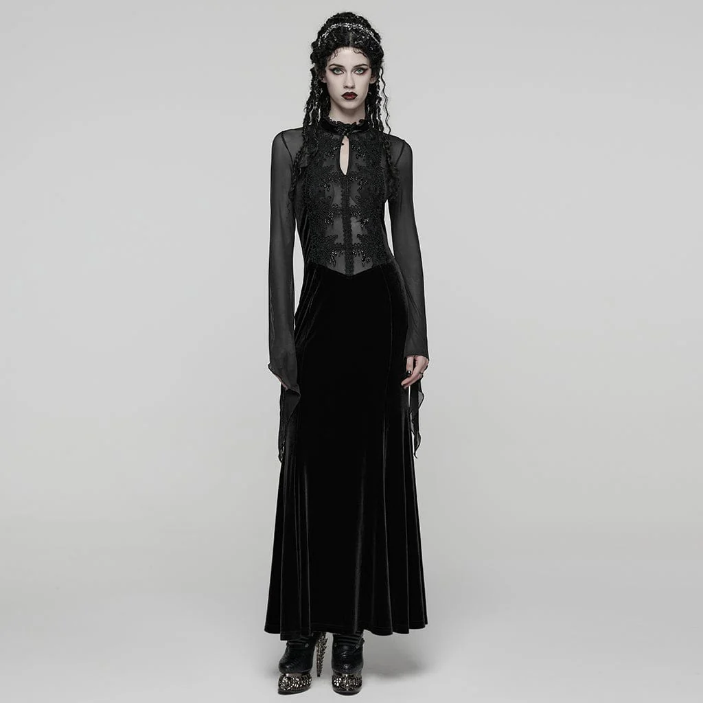 VenditaScegli Questo prodotto ha più varianti. Le opzioni possono essere scelte nella pagina del prodottoAbito lungo in velluto a vita alta con applicazioni gotiche da donna