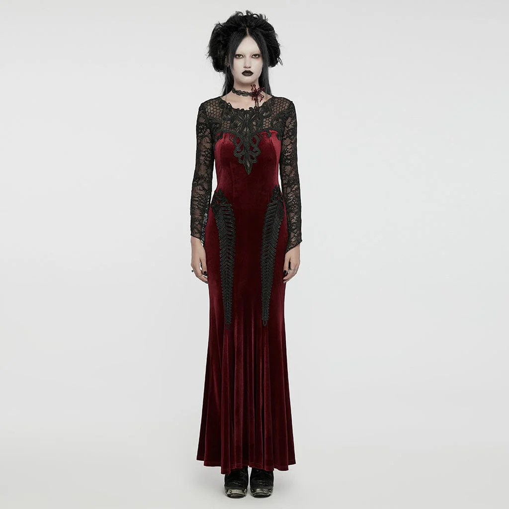 VenditaScegli Questo prodotto ha più varianti. Le opzioni possono essere scelte nella pagina del prodottoAbito da sposa rosso con coda di pesce in velluto e pizzo gotico da donna