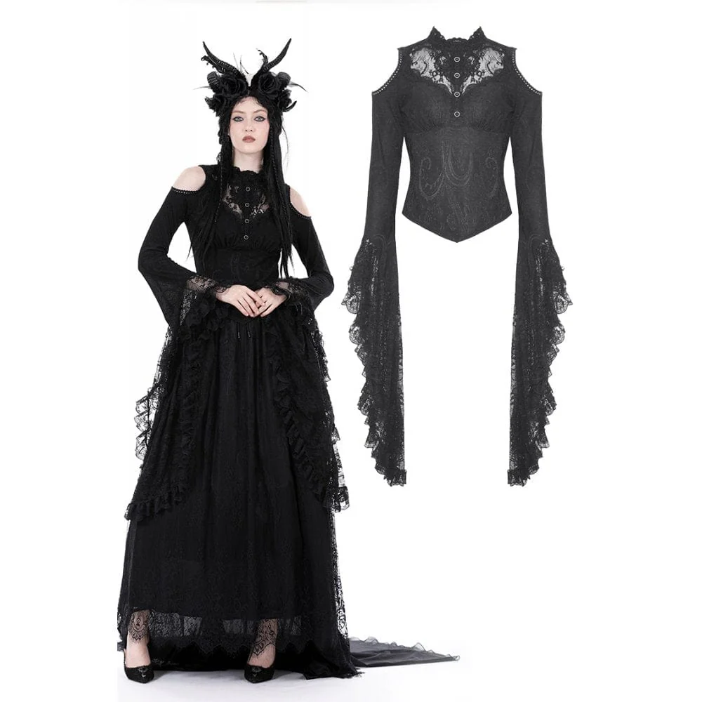 VenditaScegli Questo prodotto ha più varianti. Le opzioni possono essere scelte nella pagina del prodottoCamicetta da donna con maniche svasate in pizzo gotico con spalle scoperte