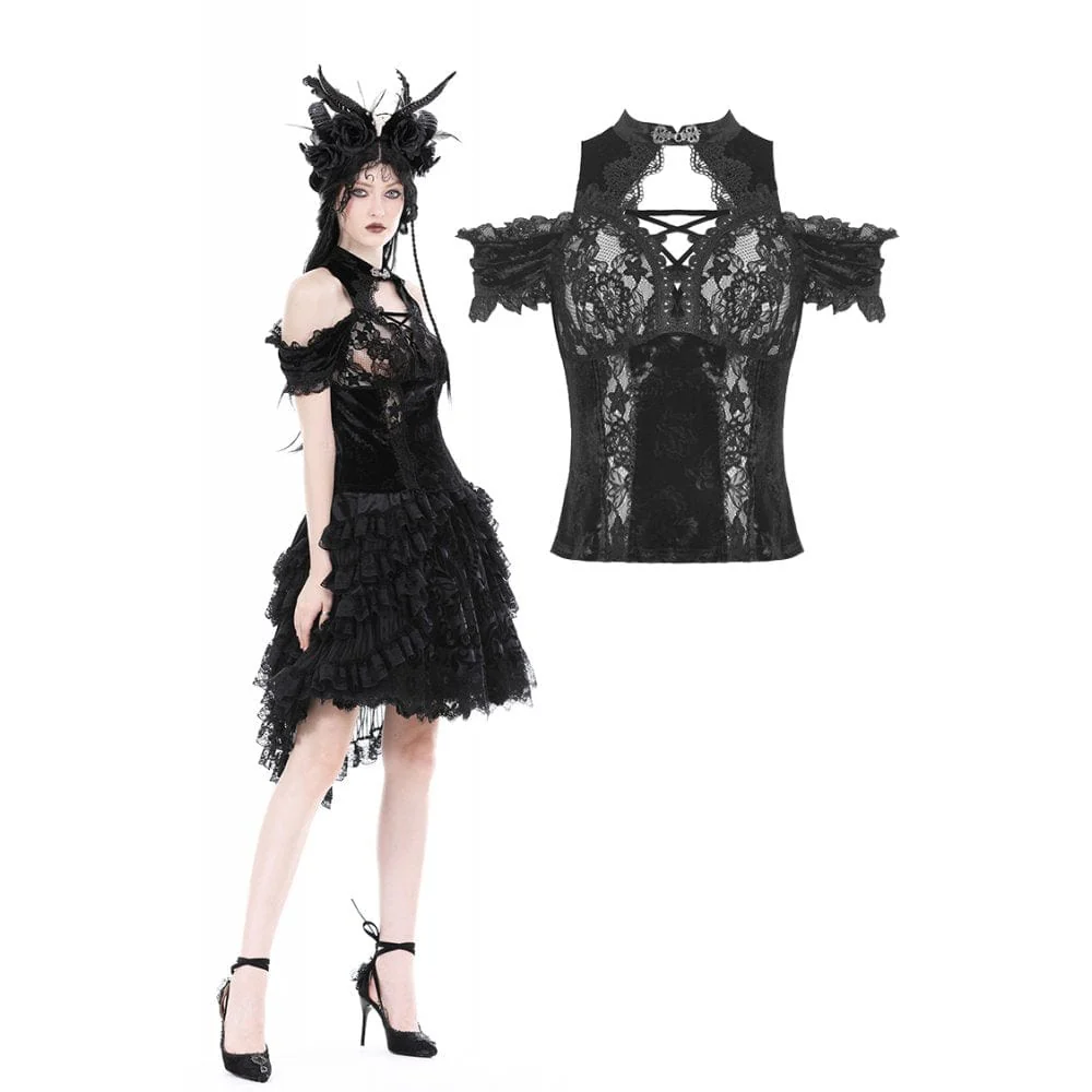VenditaScegli Questo prodotto ha più varianti. Le opzioni possono essere scelte nella pagina del prodottoTop in velluto con giunture in pizzo gotico con spalle scoperte