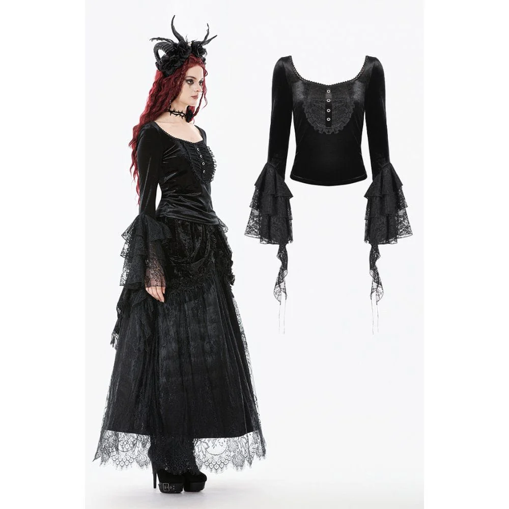 VenditaScegli Questo prodotto ha più varianti. Le opzioni possono essere scelte nella pagina del prodottoTop in velluto con maniche svasate e colletto squadrato in stile gotico da donna
